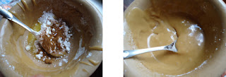 1. Vaahdota munat ja sokeri. Lisää sulatettu voi sekä vahva kahvi sekaan.